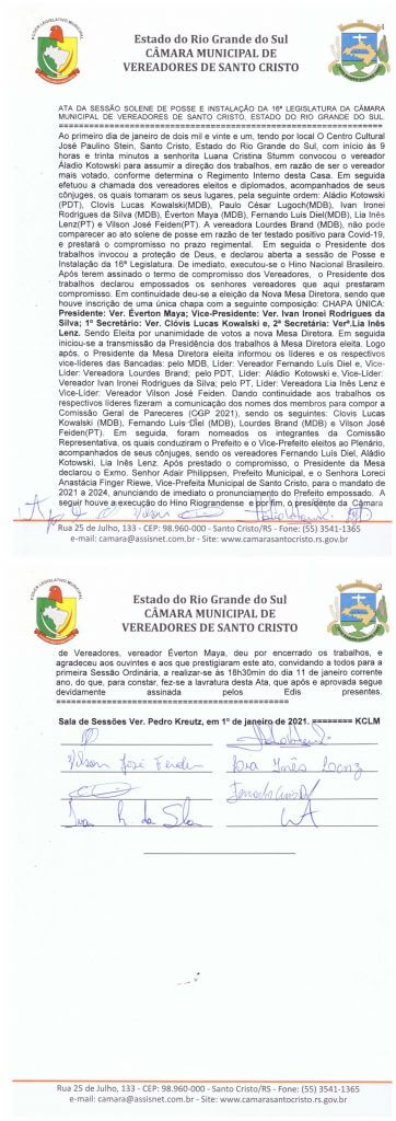 Ata da Sessão Solene de Posse e Instalação da 16ª Legislatura