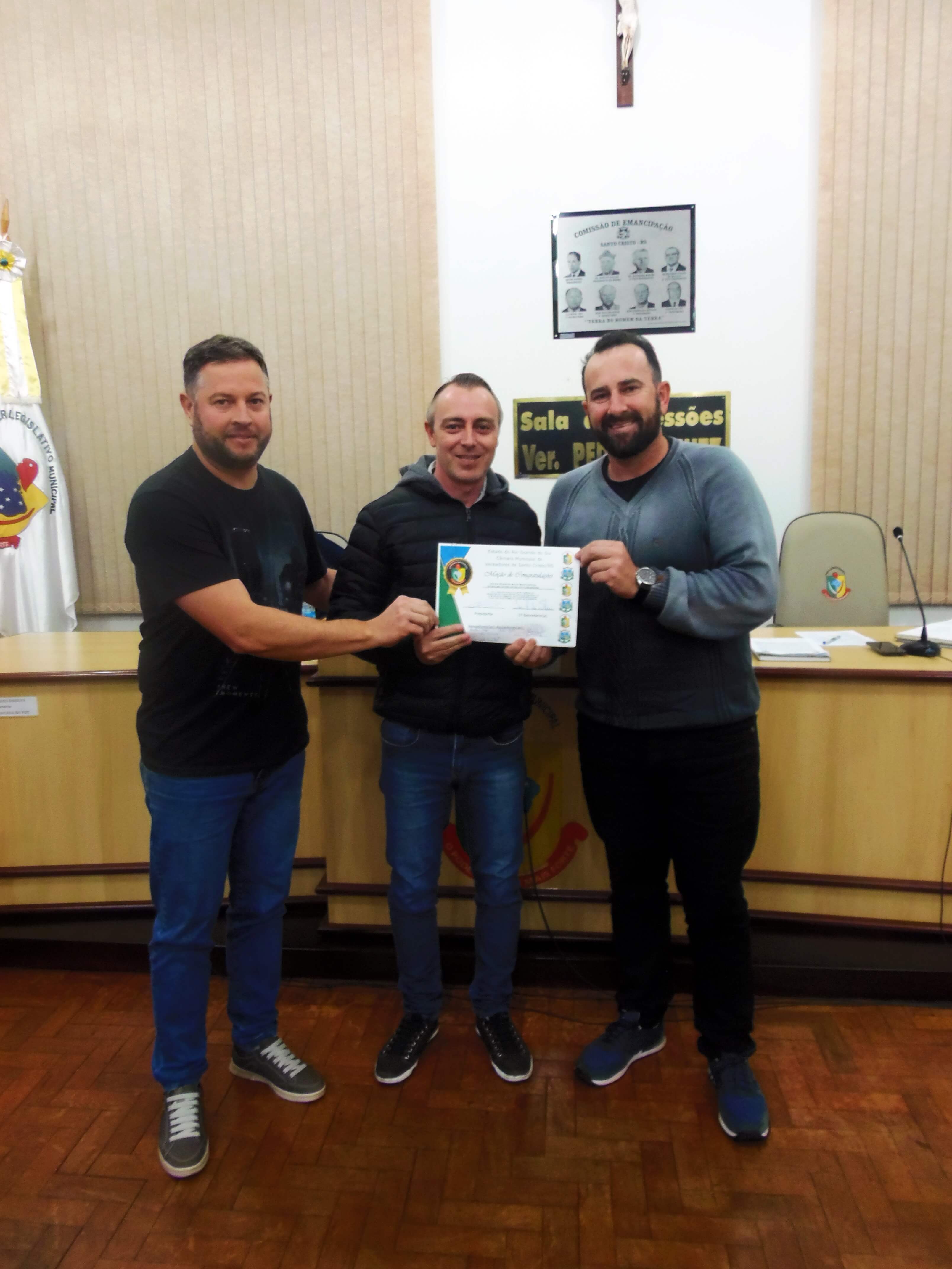No dia 06 de junho de 2022, foi realizada a 13ª Sessão Ordinária deste ano, com início às 18h e 30 min., na Sala das Sessões Ver. Pedro Kreutz, oportunidade em que foi entregue uma Moção de Congratulações ao Sr. Francis Augustin, representante e técnico da Equipe Sênior de Bolão Masculino da Sociedade Centro Recreativo Tiradentes, que conquistou o 6º lugar no Campeonato Brasileiro de Clubes Sênior, realizado nos dias 12 a 15 de maio do corrente ano, nas dependências do Clube Sete de Setembro da Cidade de Xanxerê/SC.