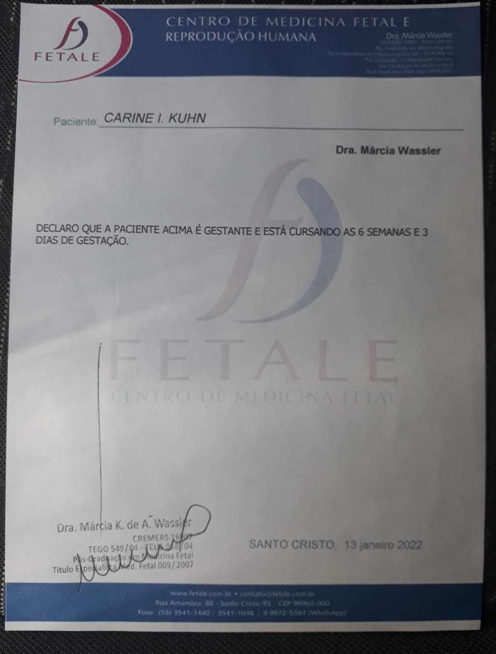 A necessidade da contratação pretendida se justifica tendo em vista que a servidora Carine Isabel Kuhn é gestante, conforme atestado médico em anexo.